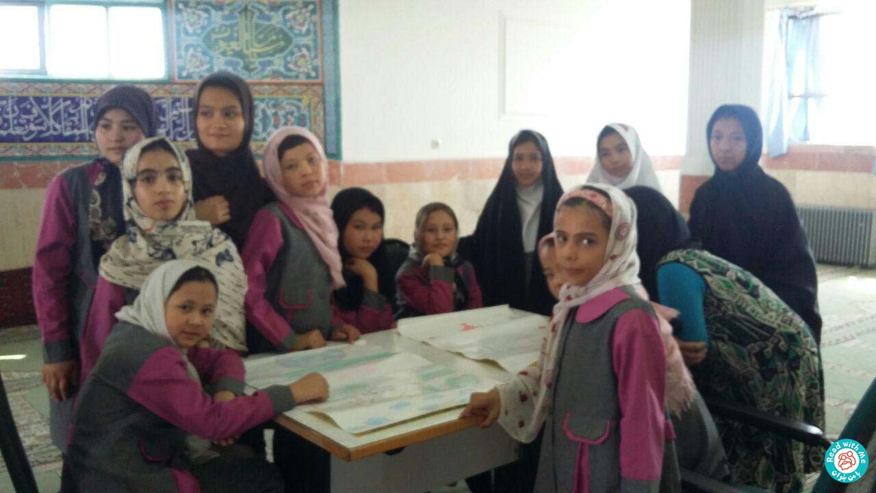 فعالیت بعد از بلندخوانی: عناصر داستان را گروهی کار کردند. یک گروه شخصیتها گروهی صحنهپردازی گروهی مشکل و گروهی چگونگی حل مشکل را نقاشی کردهاند.