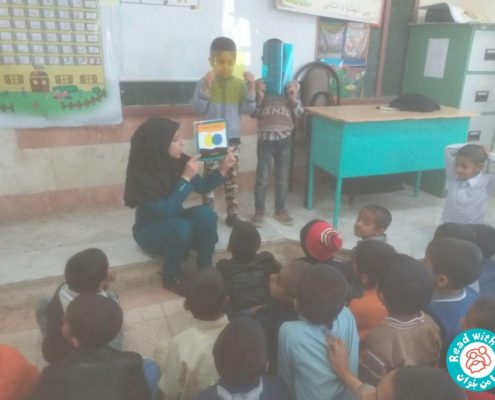 کتاب آبی کوچولو و زرد کوچولو را برای ۳۳ نفر از دانشآموزان بلندخوانی کردم و برای فعالیت بعد از بلندخوانی بچهها نمایش کتاب را اجرا کردند.