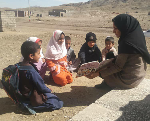 Dolati Moghaddam School Library is located at a nomadic village in Zahedan. It was established in December 2018 by the Read with Me team with more than 400 books along with handbooks and activity sheets. Its establishment was made possible by the endeavors of the former teacher of the school and her family.