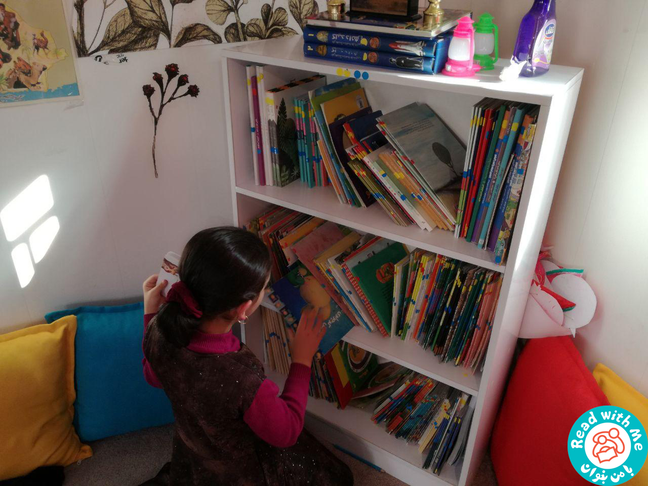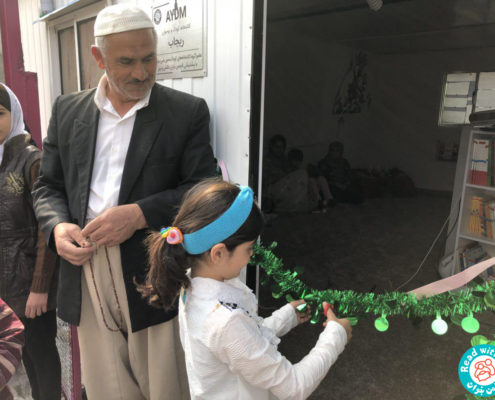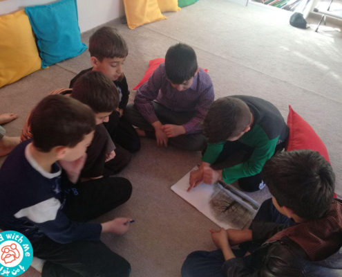 در روزهای ۱۷ و ۱۸ اسفند ۹۶، آموزشگران با من بخوان کارگاههای بلندخوانی که شامل شناخت ادبیات کودکان و کتابهای باکیفیت است و همینطور، انجام فعالیتهای هنری در پیوند با کتاب را برای این گروه از آموزگاران و ترویجگران برگزار کردند و یک هفته بعد، با رسیدن کانکس خریداری شده از سوی انجمن یاران دانش و مهر و بستههای کتاب و ابزار مورد نیاز برای فضاسازی، گروه اجرایی کتابخانهها در روزهای ۲۴ و ۲۵ اسفند ۹۶ عازم منطقه شدند و این کتابخانه را بر مبنای اصول کتابخانههای با من بخوان فضاسازی و افتتاح کردند. طی فعالیت کتابخانه کارگاههای آموزشی دیگری با موضوعات مرتبط با کتابخانه و فعالیتهای مرتبط با نوجوانان برای کتابداران و مربیان و آموزگاران تحت پوشش با من بخوان برگزار شده است.