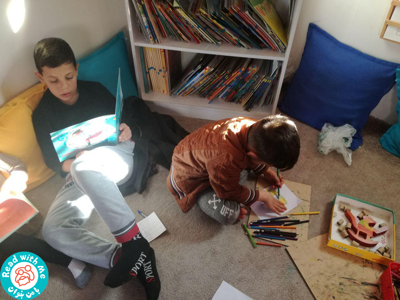 شهرستان ریجاب، یکی از مناطق استان کرمانشاه بود که متأسفانه در جریان زلزلهی آبان ماه ۱۳۹۶، این منطقه آسیبهای زیادی دید. پس از زلزله و آغاز به کار کانکس-کتابخانهی با من بخوان در شهر سر پل ذهاب و در پی استقبال مردم منطقهی کرمانشاه از این کتابخانه، درخواست برپایی کتابخانههای با من بخوان در مناطق دیگر استان کرمانشاه به روابط عمومی با من بخوان ارجاع داده شد. با اعلام آمادگی انجمن یاران دانش و مهر برای تأمین هزینههای خریداری یک کانکس و تجهیز آن به عنوان یک کتابخانهی کودکمحور، از بهمن ۱۳۹۶ گروه کتابخانهها کار خود را برای برنامهریزی و اجرای این کتابخانه آغاز کرد.